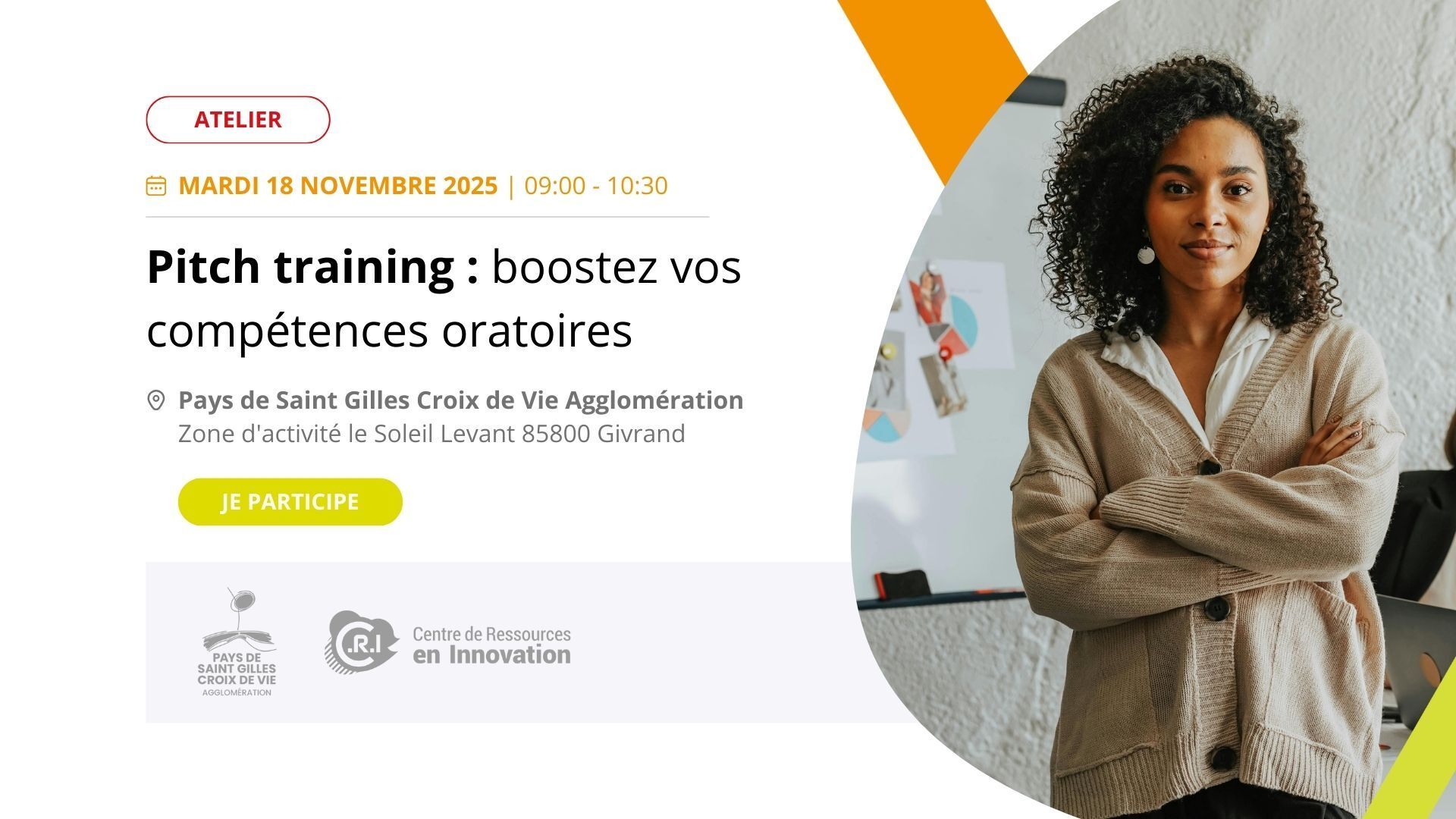 Venez vous entraîner à l’art du pitch lors de notre atelier “Pitch Training”, organisé par le Pays de Saint Gilles Croix de Vie Agglomération en partenariat avec le Centre de Ressources en Innovation (C.R.I).