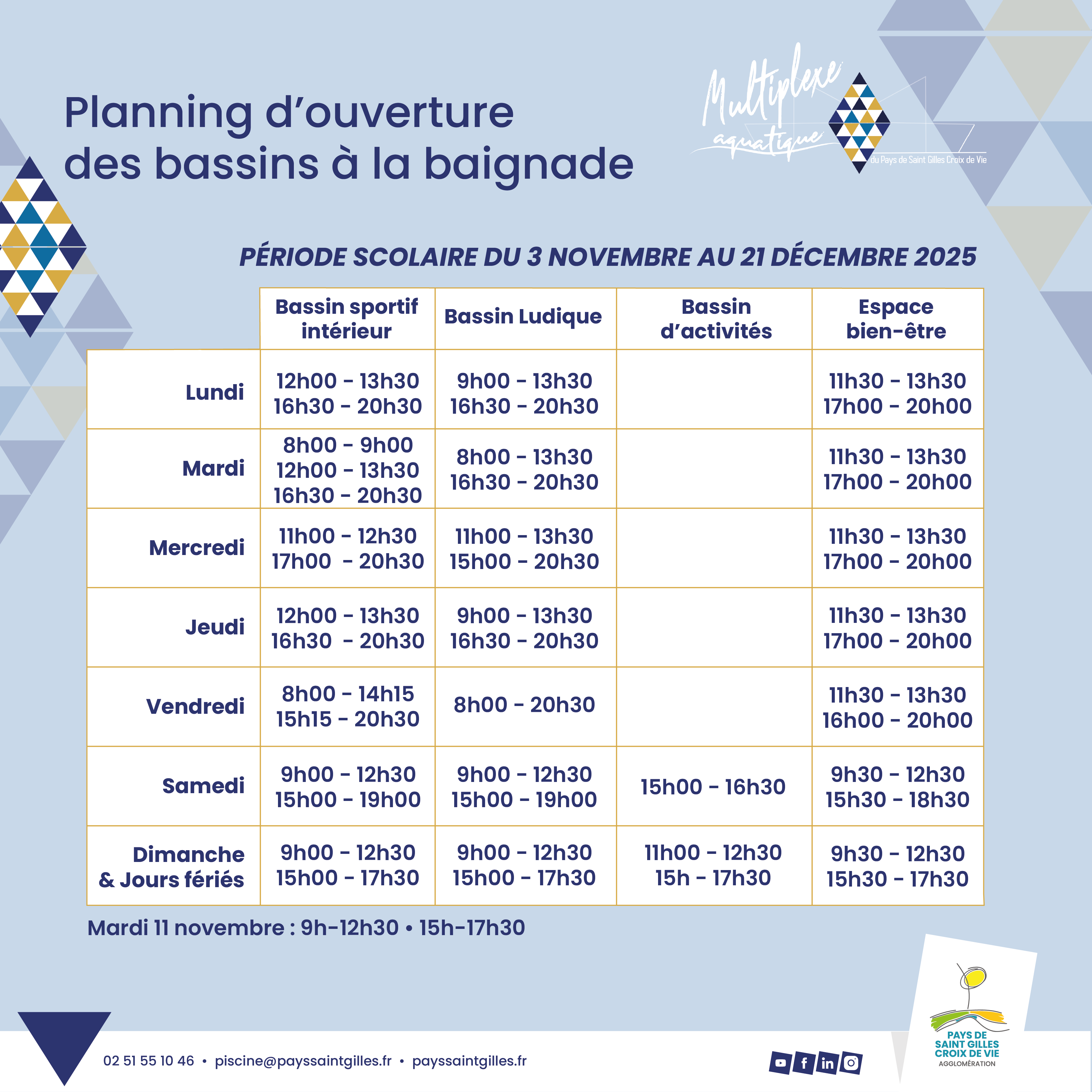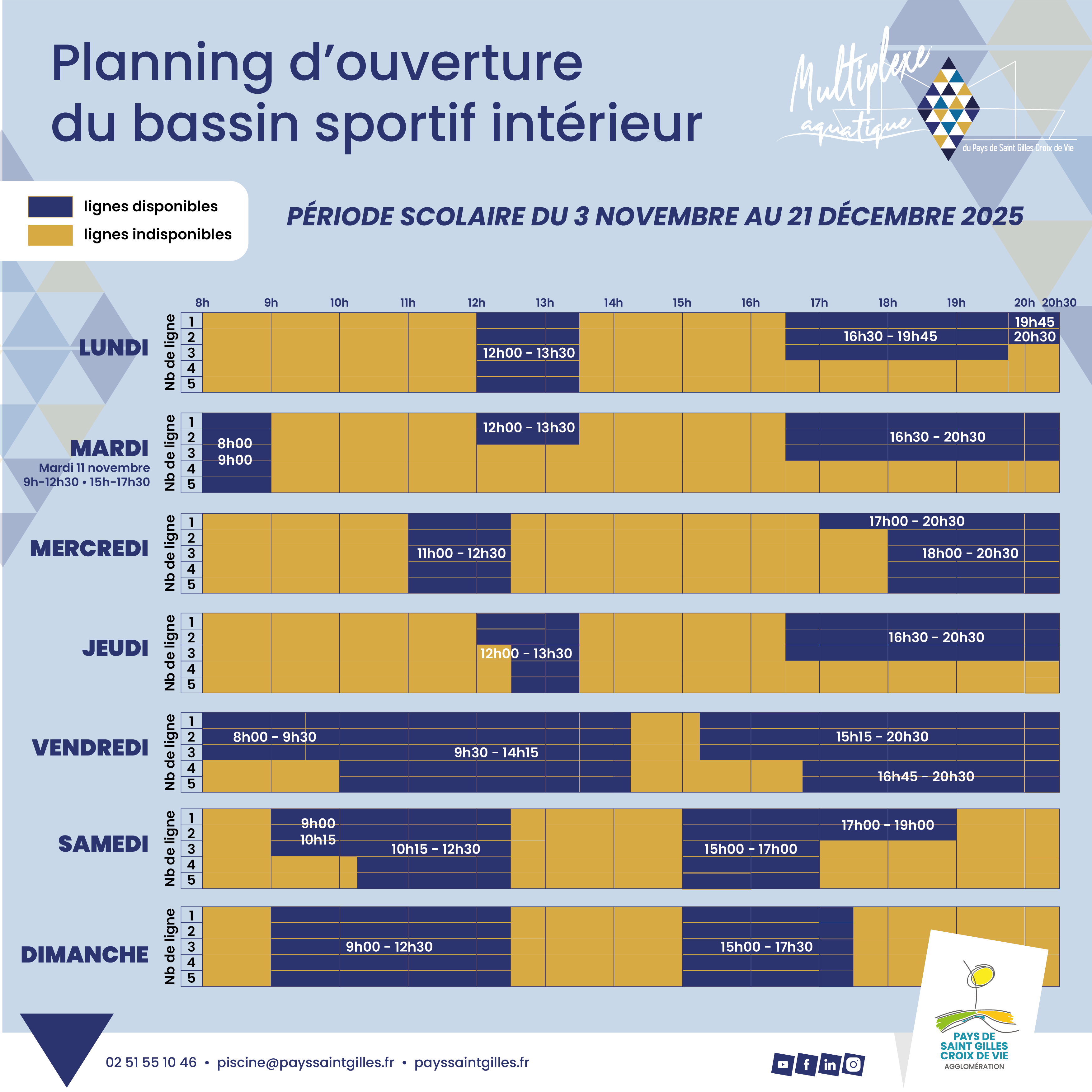 Planning général (tous les bassins ne sont pas forcément ouverts en même temps)