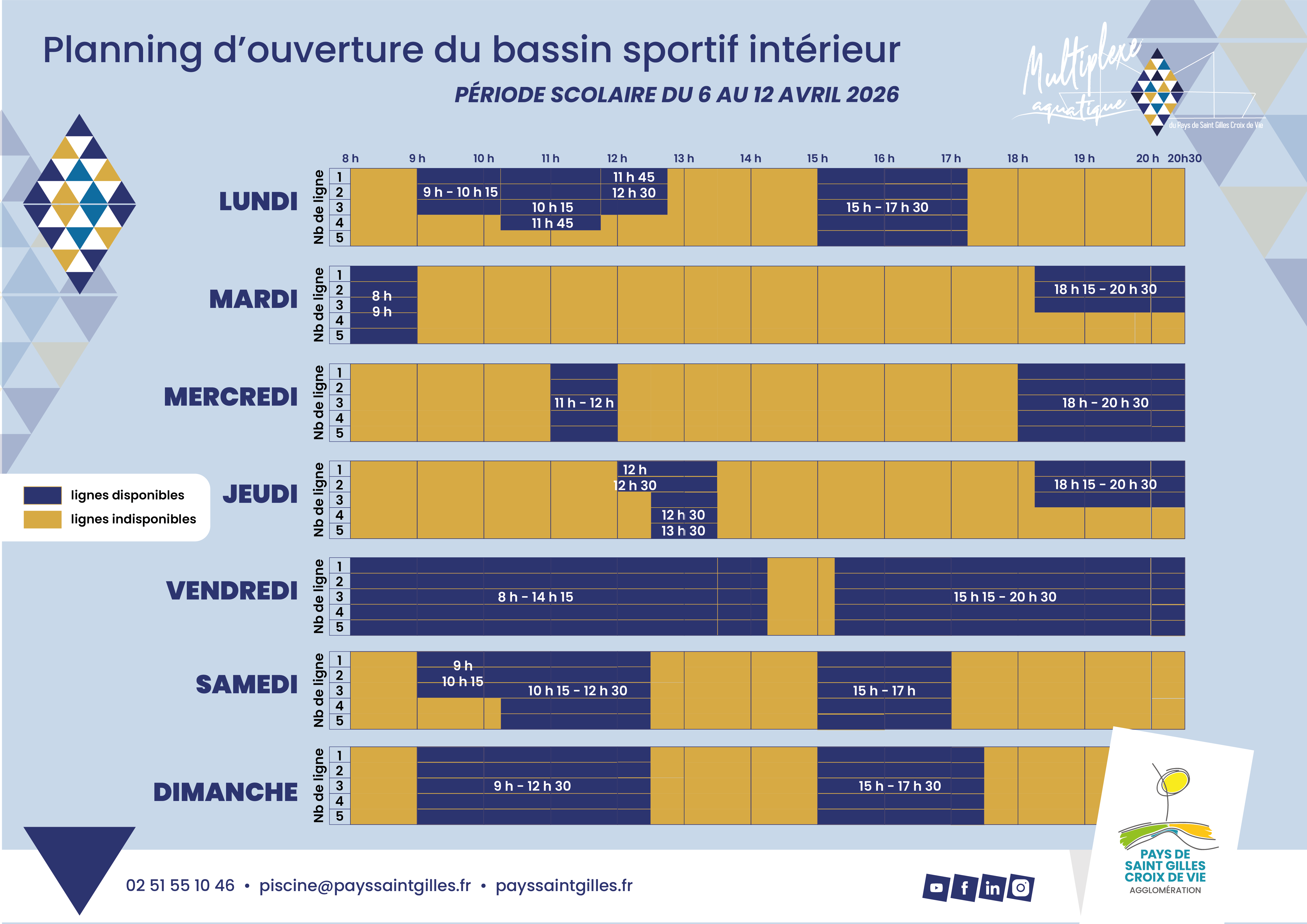 Planning d'ouverture des lignes (bassin sportif intérieur)